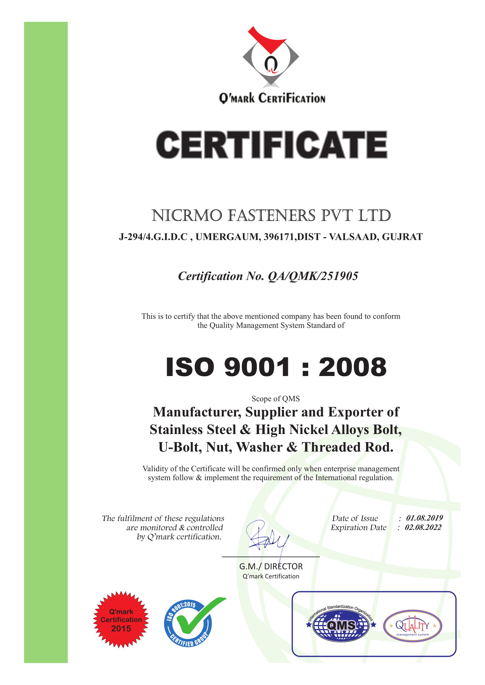 NICRMO FASTENERS PVT LTD applies a precise Quality charter which specifies systematic scheduled actions, thereby guaranteeing that your requirements are 100% satisfied.
